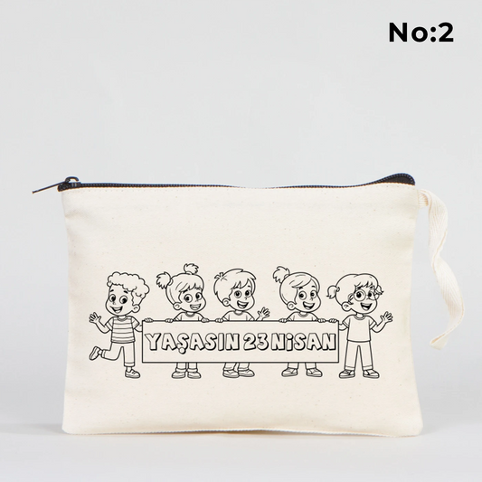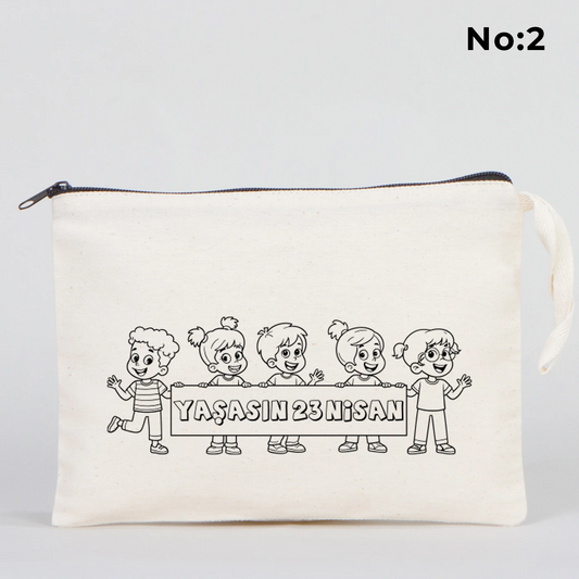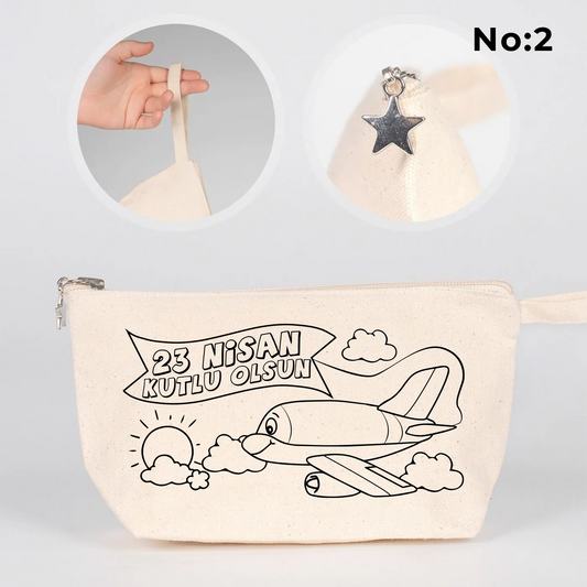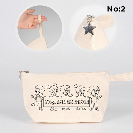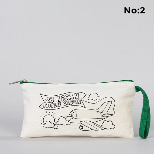 Boyanabilir 22x12x5 cm Körüklü Kanvas Kalemlik - 23 Nisan Hediyesi