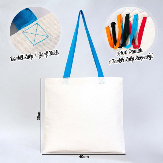 Kanvas Plaj Çantası Turkuaz Kulp - 48x41x10 cm