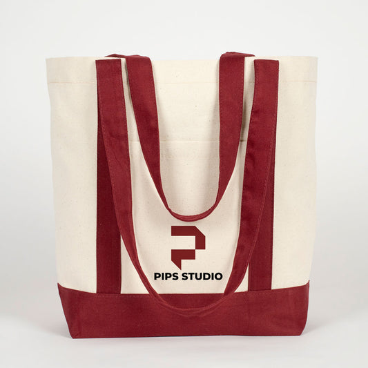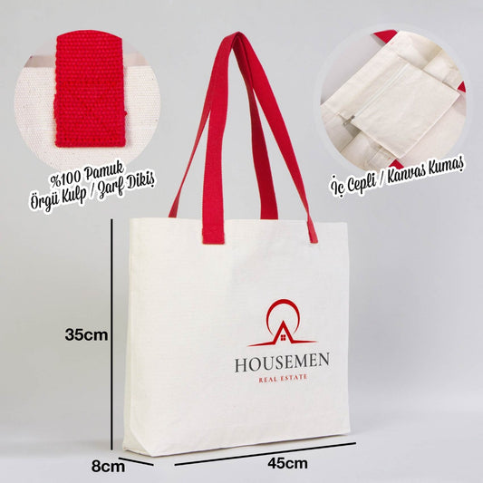 Trend Kanvas Çanta 40x35x12cm - Kırmızı Renkli Kulp (Özelleştirilebilir)