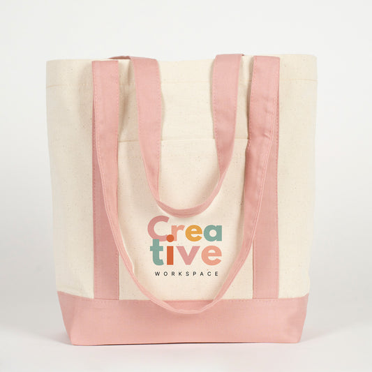 Trend Kanvas Çanta 40x35x12cm - Pembe Renkli Kulp (Özelleştirilebilir)