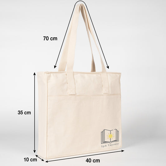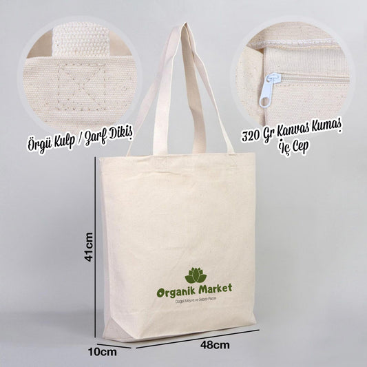 LUX Kanvas Çanta Ham Kulp, Fermuarlı- 40x35x10cm (Özelleştirilebilir)