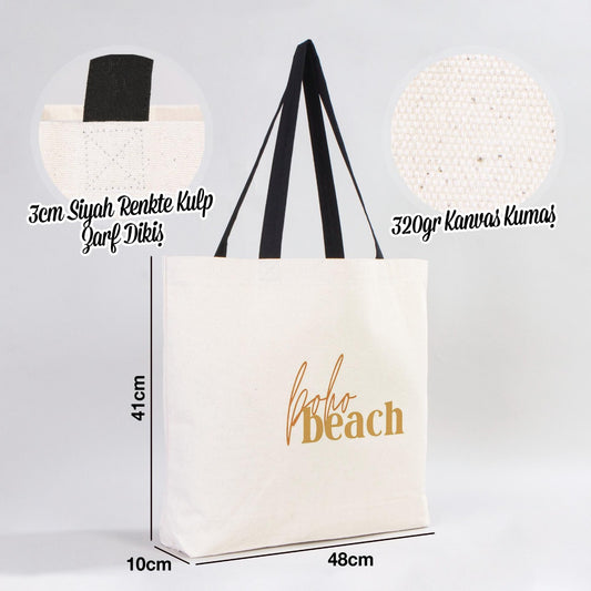 Kanvas Plaj Çantası Siyah Kulp 48x41x10 cm (Özelleştirilebilir)