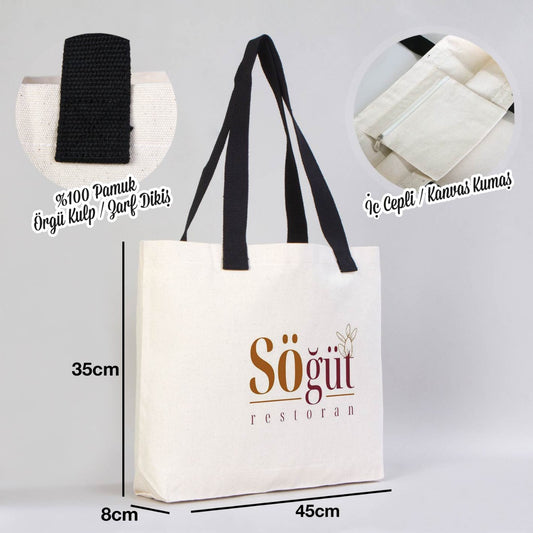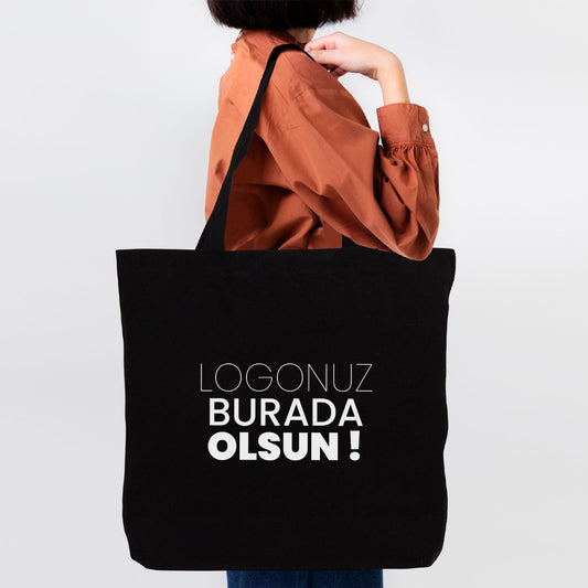 Trend Kanvas Çanta 40x35x12cm - Siyah Renkli Kulp (Özelleştirilebilir)