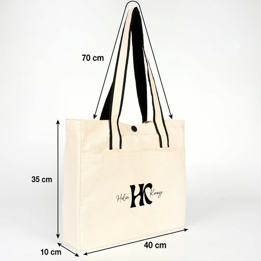 Modern Kanvas Çanta - Dıştan Siyah Örgü Kulp 45x35x8 cm (Özelleştirilebilir)