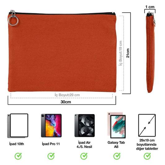İpad Portföy Çanta Kiremit (30x21 cm) Astarlı