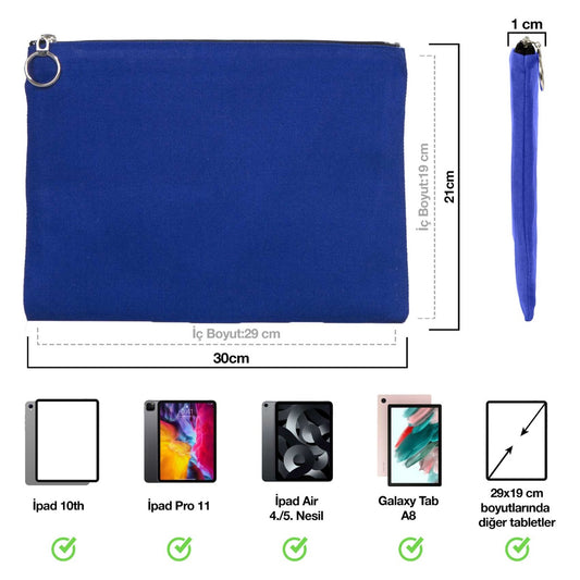 İpad Portföy Çanta Mavi (30x21 cm) Astarlı (Özelleştirilebilir)