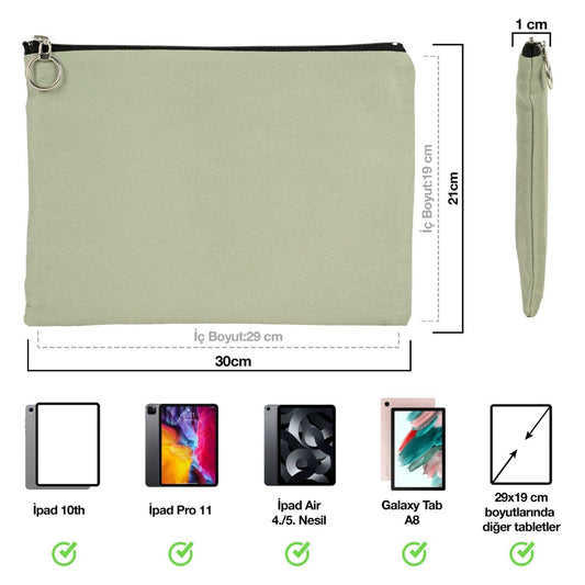 İpad Portföy Çanta Mint Yeşili (30x21 cm) Astarlı