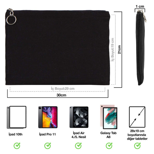 İpad Portföy Çanta Siyah 30x21 cm Astarlı (Özelleştirilebilir)
