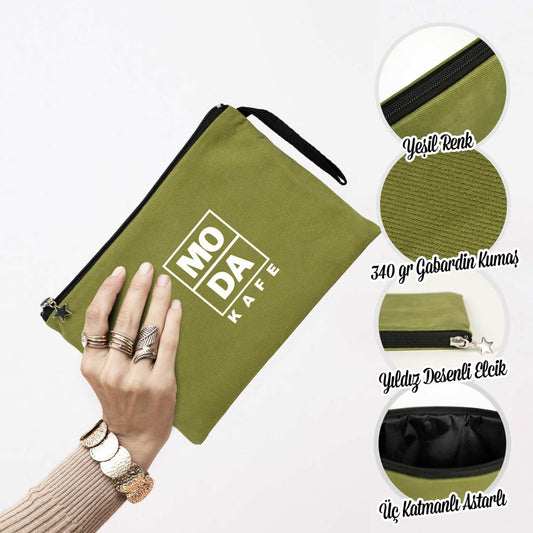 Clutch Kanvas Çanta Yeşil- 25x18 cm Astarlı (Özelleştirilebilir)