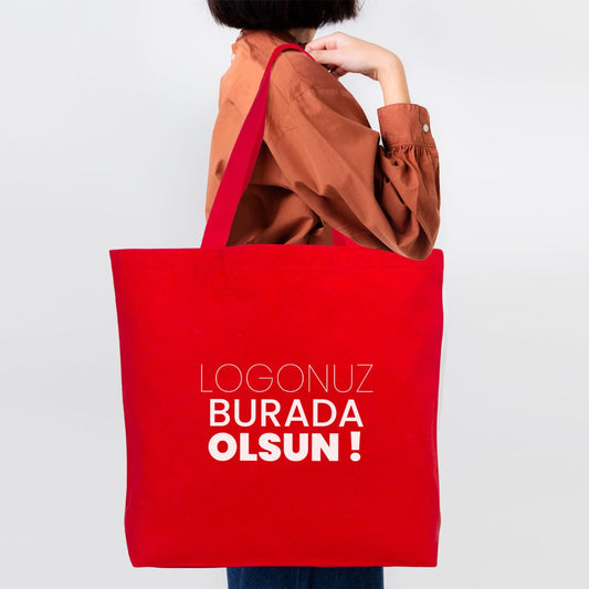 Baskılı Kanvas Plaj Çantası Kırmızı İç Cepli (Özelleştirilebilir)