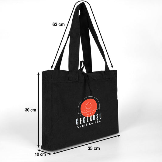Baskılı SİYAH Kanvas Büyük Alışveriş & Plaj & Geniş Hacim Çanta - 48x41x10 cm İç cep Örgü Kulp (Özelleştirilebilir)