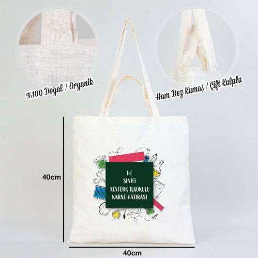 Gabardin Kırmızı Bez Çanta 35x40 cm Karne Günü Baskılı (Özelleştirilebilir)