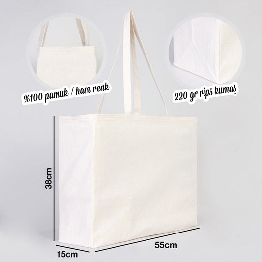 Mega Büyük Boy Bez Çanta - Tam Körüklü 55x38x15 cm