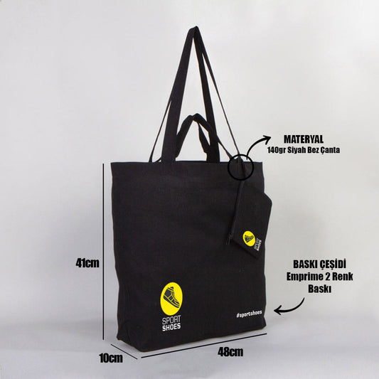 Promosyon Siyah Çift Kulplu Bez Çanta - Ayakkabı Çantası