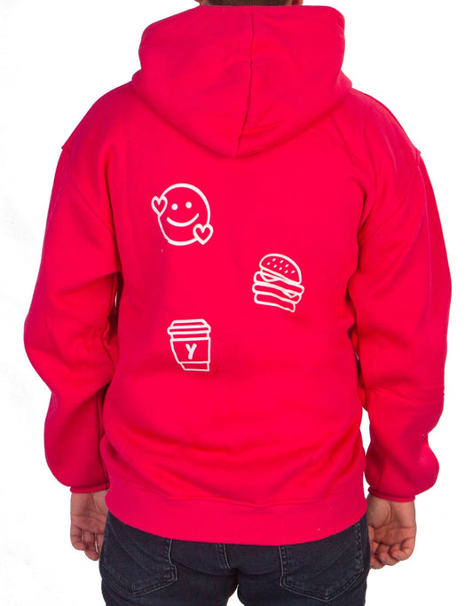 Baskılı Reglan Gövde Kapüşonlu Sweatshirt Kırmızı - 3 İplik Şardonsuz