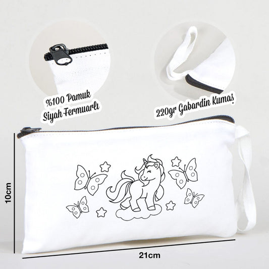 Boyanabilir Bez Kalemlik - Büyülü Unicorn ve Uçuşan Kelebekler