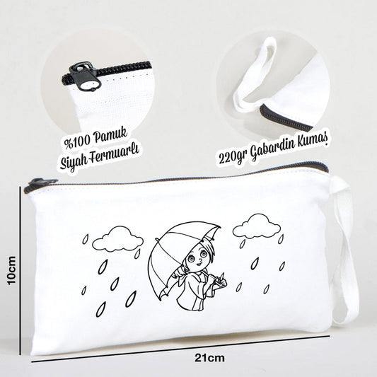 Boyanabilir Bez Kalemlik - Şemsiyeli Kız