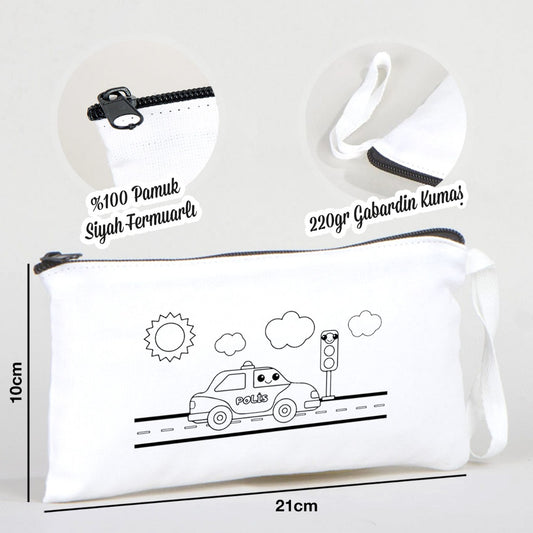 Boyanabilir Bez Kalemlik - Sevimli Polis Arabası