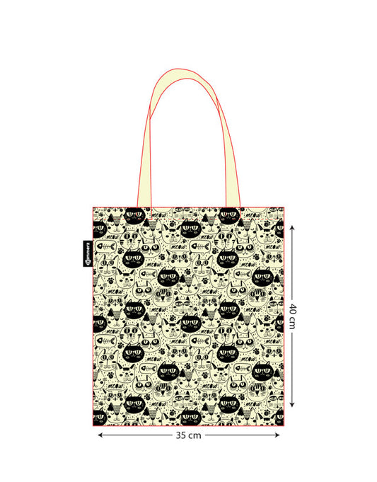 Bammerz Gabardin Siyah Kulp 35X40 cm 'Meow' Kedili Çanta