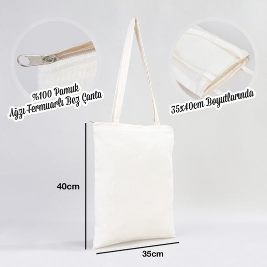 Fermuarlı Ham Bez Çanta 35x40cm (Özelleştirilebilir)