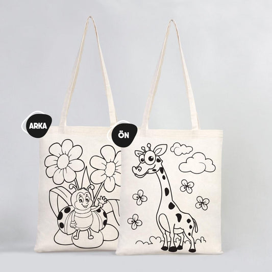 Sınıf Boyama Desenli Set 1 - 25 Adet Boyanabilir Çanta / 1 Adet 12'li Keçeli Kalem