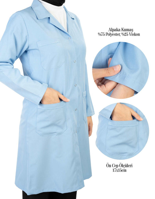 Açık Mavi Alpaka Kadın İş Önlüğü