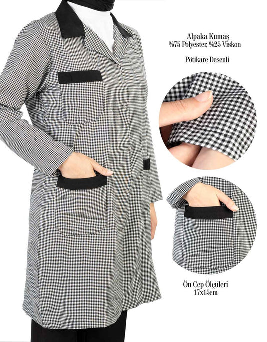 Pötikare Kadın İş Önlük, Siyah Açık Yaka