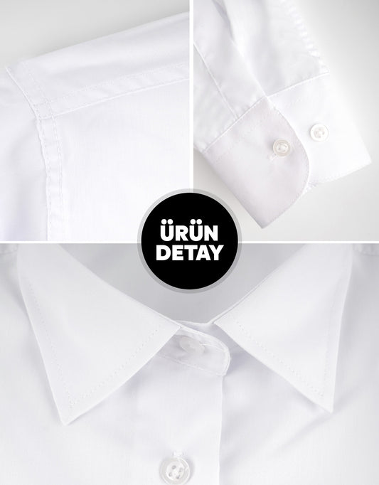Kadın Beyaz Gömlek – Baskısız, Toptan Satış (Özelleştirilebilir)