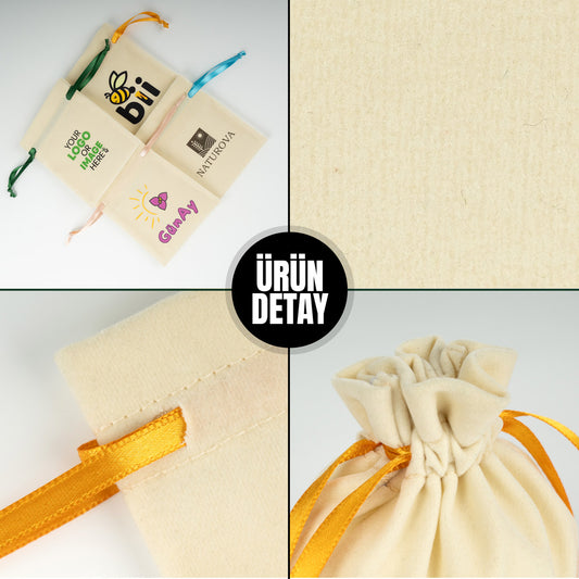 Kadife Gül Kese 10x13 cm - Turuncu Renk İp (Özelleştirilebilir)