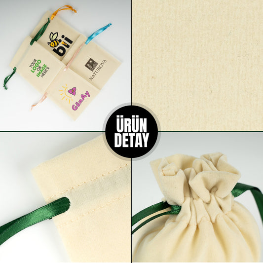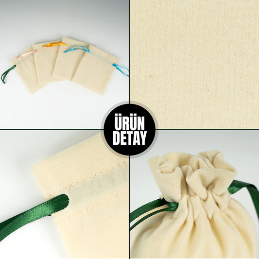 Kadife Gül Kese 10x13 cm - Yeşil Renk İp (Özelleştirilebilir)