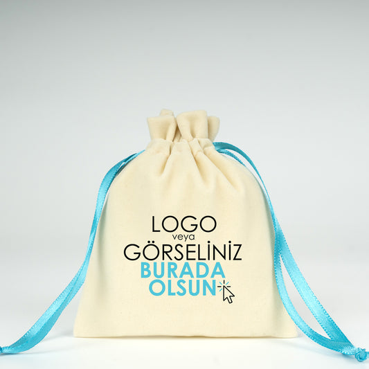 Kadife Gül Kese 10x13 cm - Turkuaz Renk İp (Özelleştirilebilir)