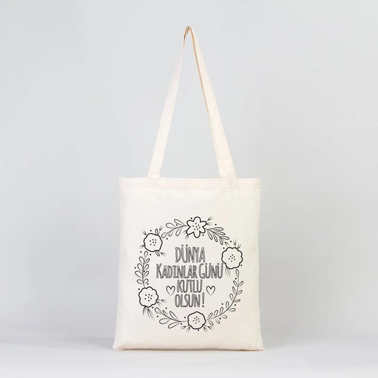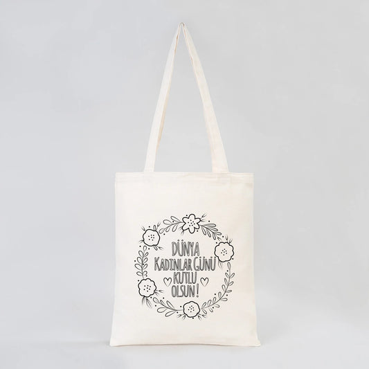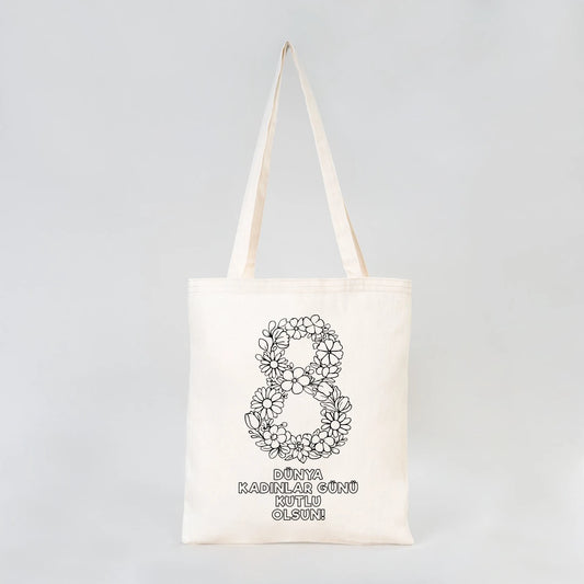 Boyanabilir 35x40 cm Gabardin Bez Çanta - Kadınlar Günü Hediyesi