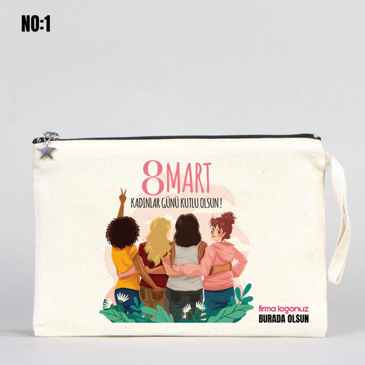 8 Mart Dünya Kadınlar Günü Clutch Kanvas Çanta (25x18 cm)