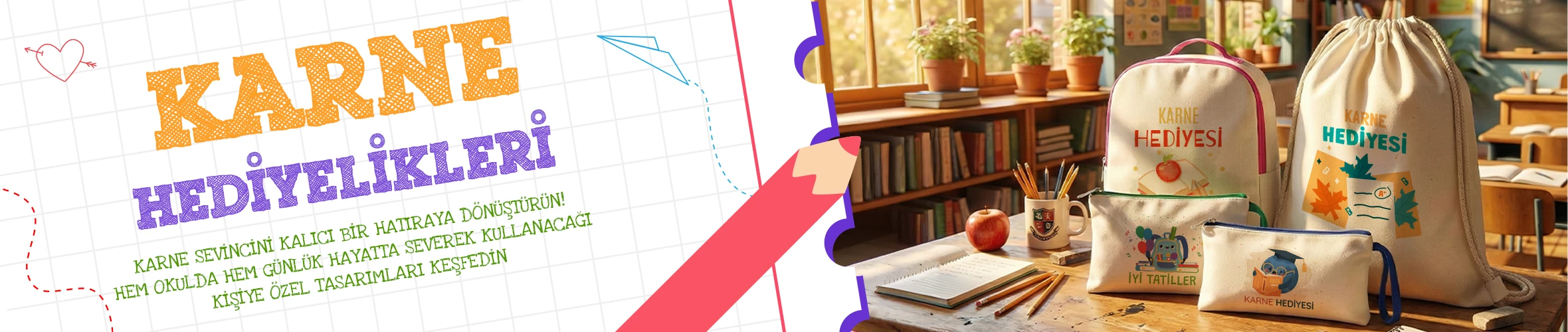 Karne günü için baskılı bez çantalar hem şık hem de işlevsel bir hediye seçeneği. Dayanıklı yapısı ve öğrencilerin günlük yaşamında rahatlıkla kullanabileceği tasarımlarıyla her yıl en çok tercih edilen karne hediyeleri arasında yer alıyor. Renkli baskılar, karne temalı illüstrasyonlar ve kullanışlı ölçüler sayesinde hem hatıralık hem de uzun süre kullanılabilir bir ürün sunuyor.