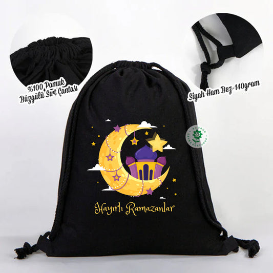 35x40 cm Siyah Bez Sırt Çantası Ham Bez Büzgülü - Bayram Sırt Çantası