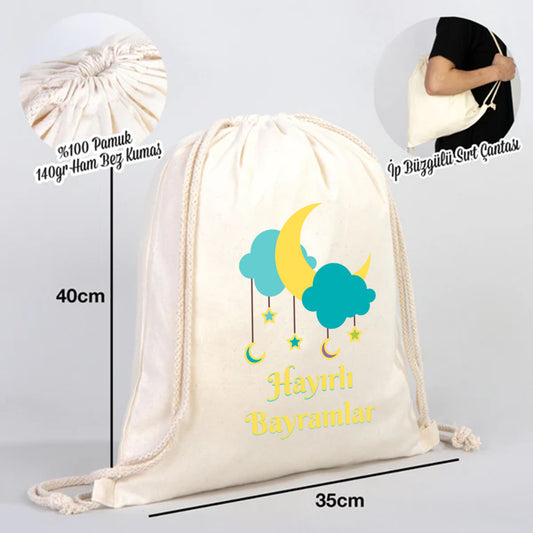 40x50 cm Ham Bez Büzgülü Sırt Çantası - Bayram Çantası