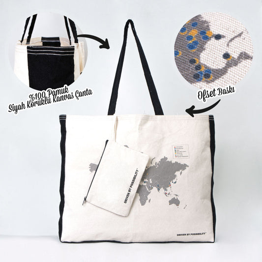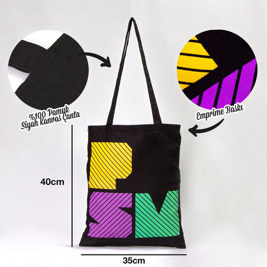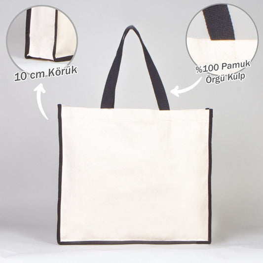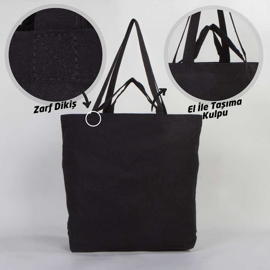 Kanvas Siyah Biyeli Alışveriş Çantası