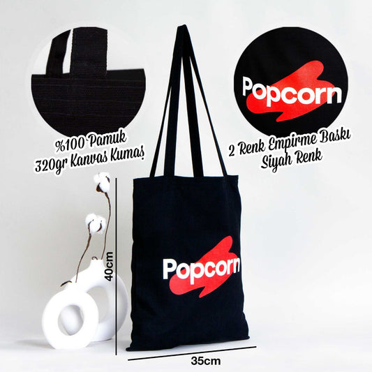 Siyah Promosyon Kanvas Çanta 35x40cm - Popcorn