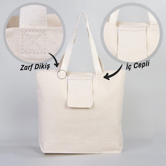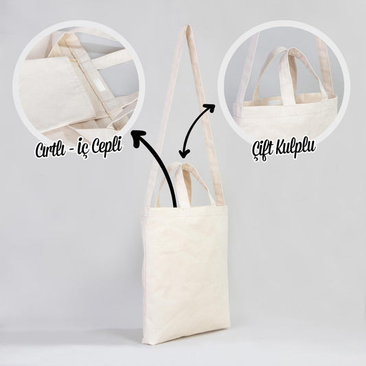 Kanvas Alışveriş Çanta İç Cepli Cift Kulplu Cırtlı Körüklü