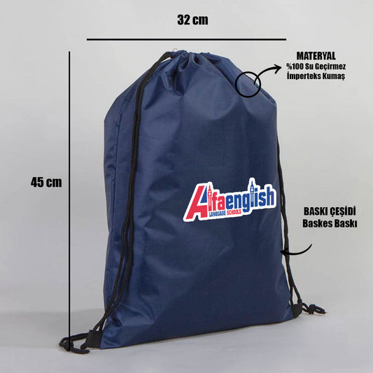 İmperteks 30x40 Kuş Gözlü Mavi Büzgülü Sırt Çantası (Özelleştirilebilir)