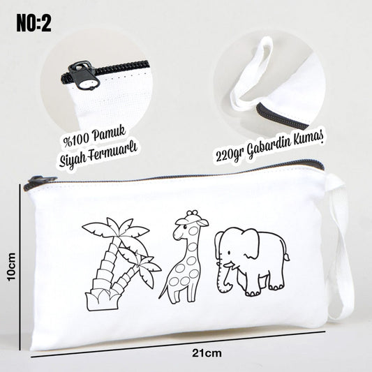 Yıkanabilir Eğlence Seti - 5 Adet Çift Yön Boyanabilir Çanta / 1 Adet Boyanabilir Kalemlik / 1 Adet 12'li Keçeli Kalem