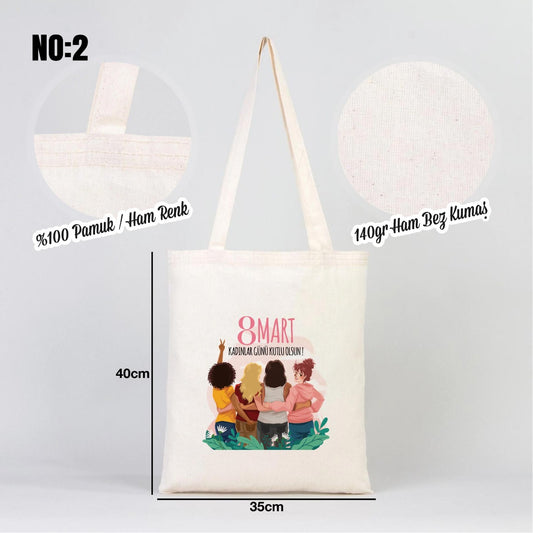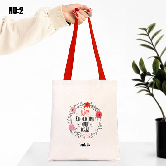 Kadınlar Günü Kanvas Plaj Çantası 48x41x10cm