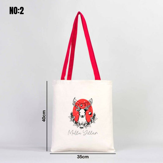 Yılbaşı Kanvas Çanta Kırmızı Kulp - İç Cepli (Özelleştirilebilir)
