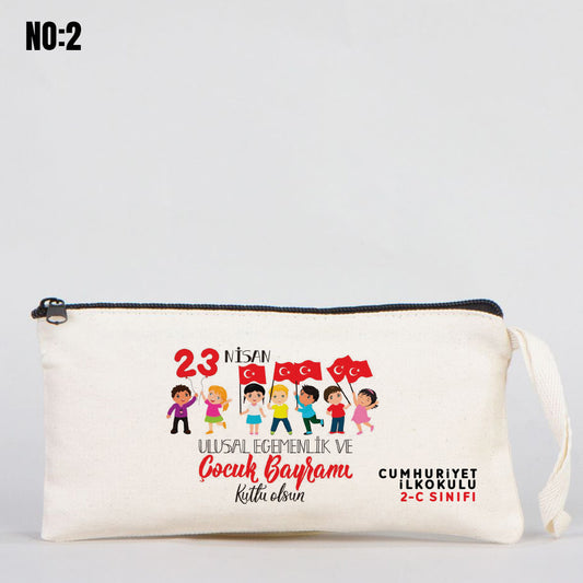 23 Nisan Renkli Fermuarlı Clutch Kalemlik 21x15 cm (Özelleştirilebilir)