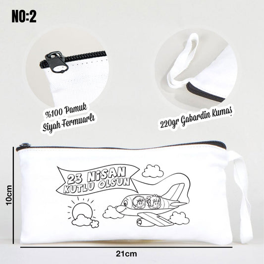 23 Nisan Boyanabilir Renkli Fermuarlı Bez Kalemlik