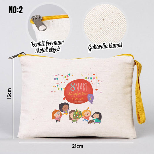 Kadınlar Günü Renkli Fermuarlı Kalemlik Çanta - 21x10 cm