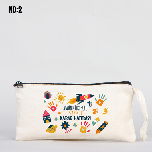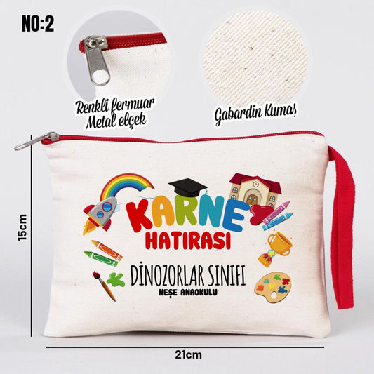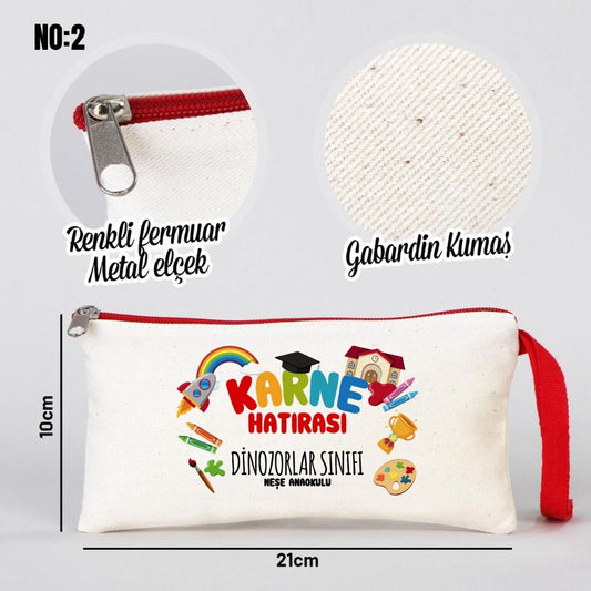 Renkli Fermuar Karne Günü Bez Kalemlik - 21x10 cm (Özelleştirilebilir)