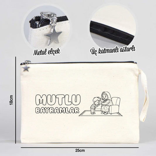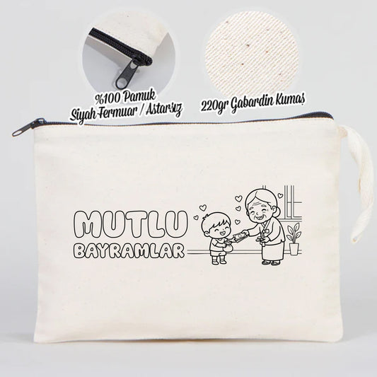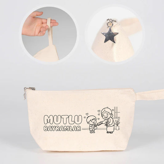 Boyama 21x10 cm Saks Mavi Fermuarlı Bez Kese - Bayram Harçlık Cüzdanı