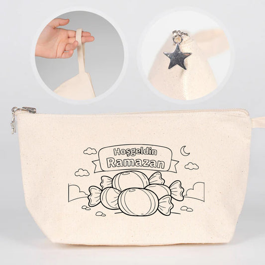 Boyanabilir 25x18 cm Astarlı Kanvas Kalemlik - Harçlık & Şeker Kesesi