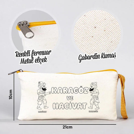 Boyanabilir 21x10 cm Sarı Renkli Fermuarlı Bez Kalemlik - Bayram Kesesi